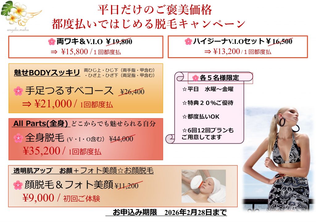 ご予約はこちら→平日脱毛キャンペーン
